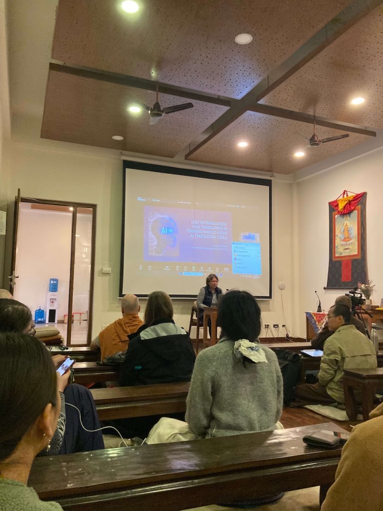 On the other hand, the traditional aspect of Rangjung Yeshe that I mentioned above, we have philosophy classes, officially called “specialised textual studies,” which are taught just as in the shedra (the monastic Tibetan Buddhist school). We have khenpo or lopon teaching texts that are usually also taught in the shedras, for example, Bodhisattvacaryāvatāra, an 8th-century Mahāyāna text by Śāntideva on how to train as a Bodhisattva. This text is always taught in the first year for students who start at RYI. Then, if, let’s say, one is a BA student studying for 4 years, the following 3 years will normally rotate through 3 different texts, each with a very specific topic and goal. The first year, which is the Bodhisattvacaryāvatāra text, sets the motivation for our studies by strongly grounding oneself in the view of the awakened mind, bodhicitta. Then one of the three other texts would be The Gateway to Knowledge (Wyl. mkhyen ‘jug) by Mipham Rinpoche, a 19th-century Rime master, on the topic of Abhidharma. Then another text would focus on Madhyamaka, and finally another text would focus on Yogācāra, such as e.g. Uttaratantraśāstra. So, mainly, these texts are classical Indian Buddhist texts studied in the monastic schools of Tibetan Buddhism and form the education for monks (of course, the texts vary from school to school). And these texts are taught to us, the students, in Tibetan by the monks themselves, with an interpreter.